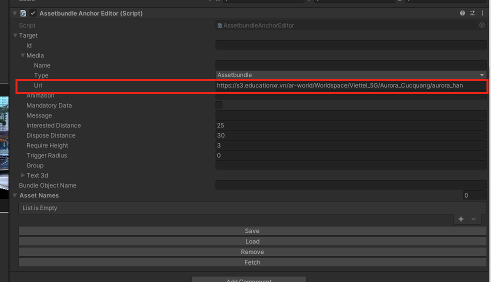 - Click Save, đợi content load, sau đó có thể thay đổi, cập nhật vị trí, scale, rotation
