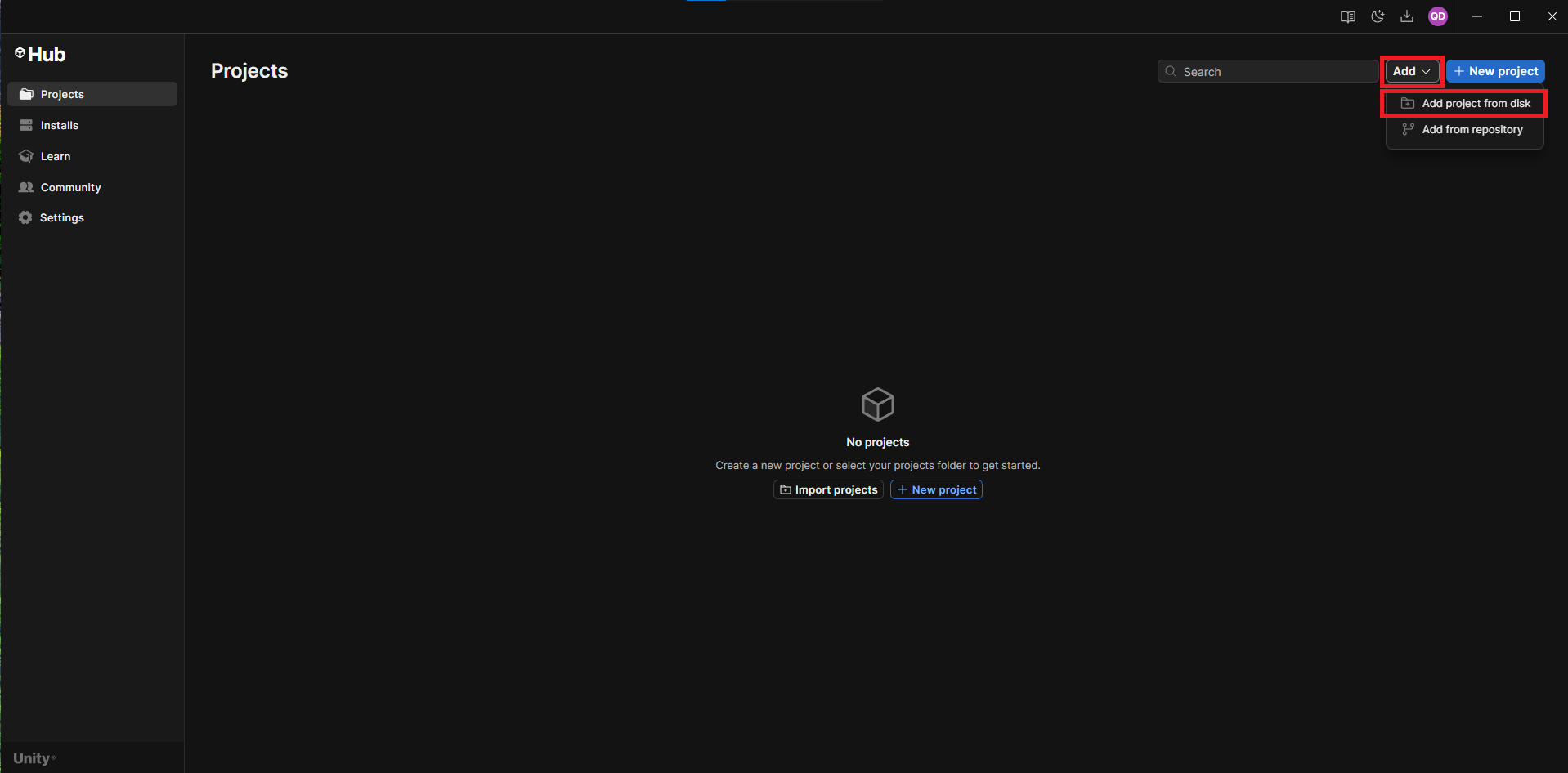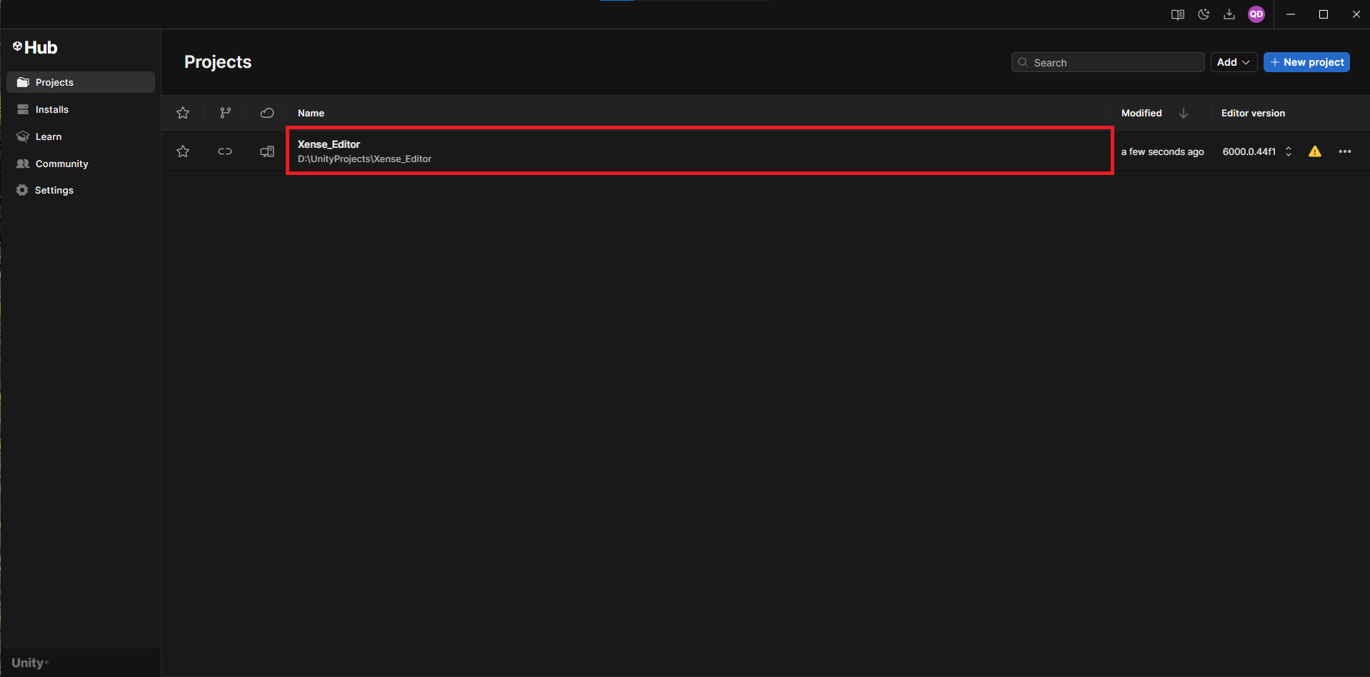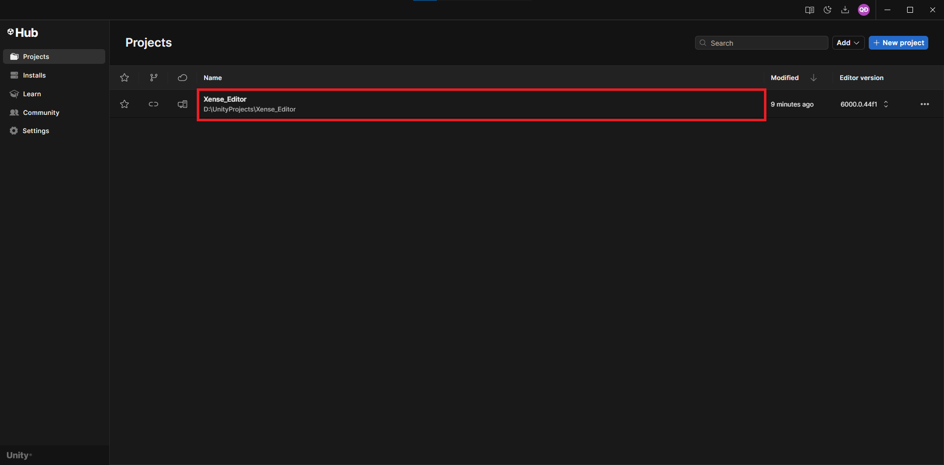 Add→Add project from disk, chọn thư mục XenseAR đã giải nén tại<Unity_Editor>