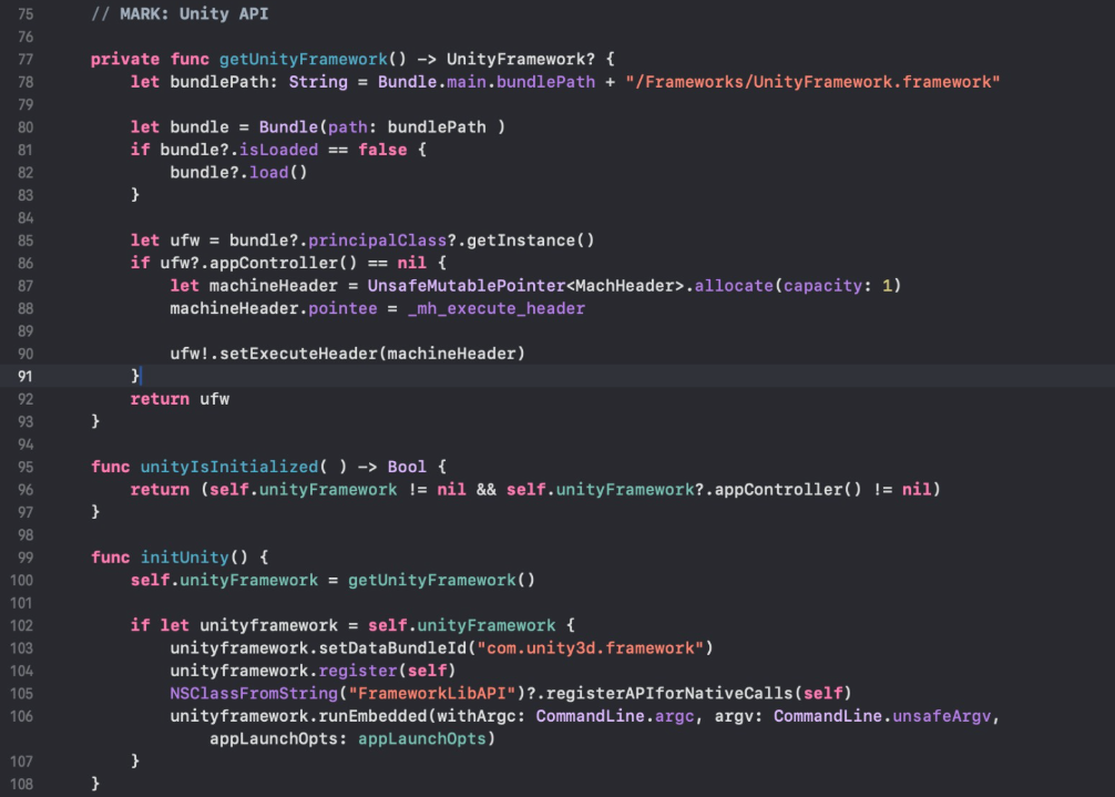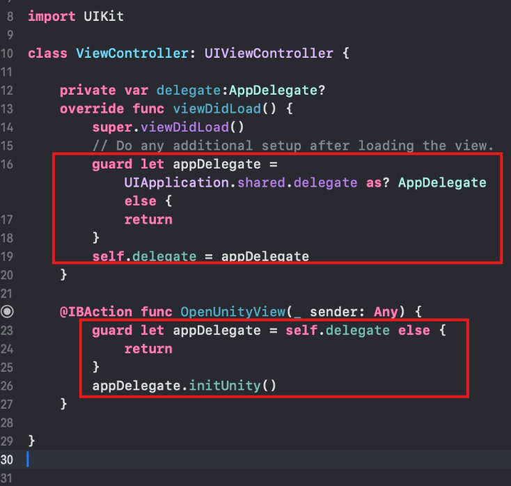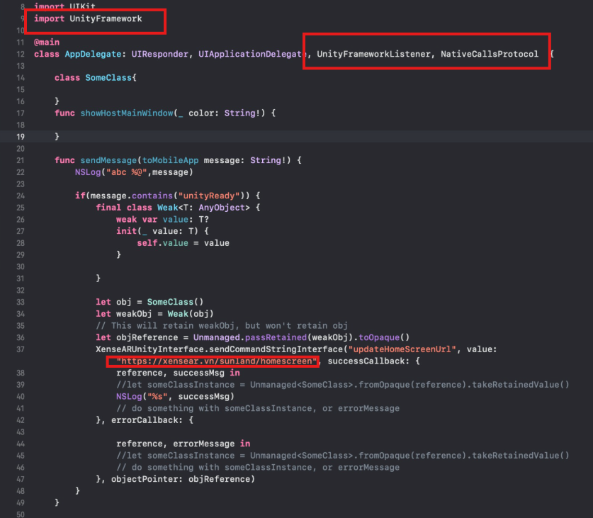 5. Để mở Unity view, gọi đến hàm initUnity đã cài đặt trong AppDelegate
