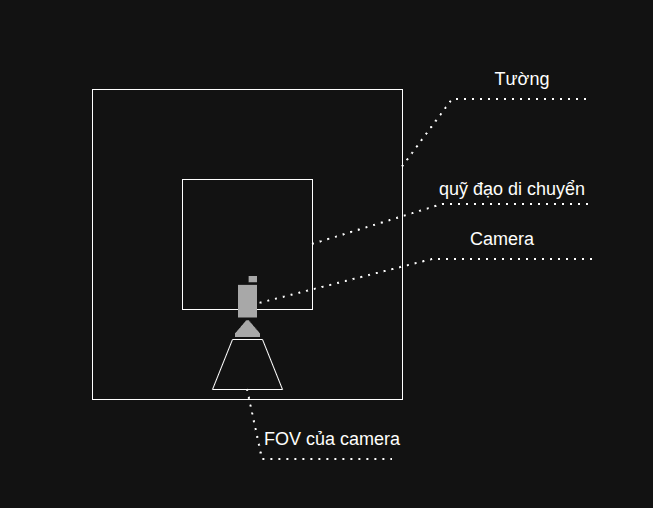 | 1 | Vẽ quỹ đạo di chuyển | Xác định các đường đi mô phỏng các vị trí đứng trong không gian thật. | - Vẽ nhiều đường đi để bao phủ toàn bộ không gian. - Mỗi đường đi tương ứng với lộ trình người quay sẽ di chuyển. |