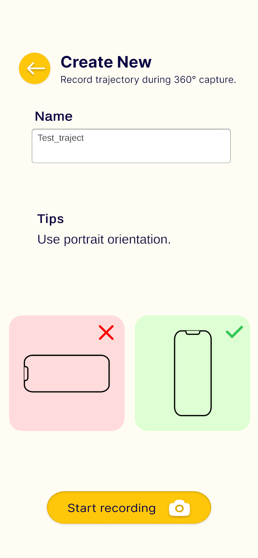 When collecting data together with a 360 camera, start recording simultaneously (see details in 360 Camera Filming Guidelines).